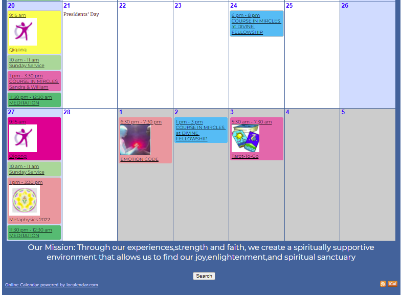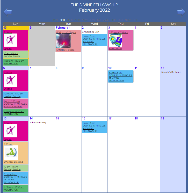 SUNDAY SERVICES: Sunday Services are in person AND live on Facebook. Visit The Divine Fellowship Facebook Page at 10:10ish AM Sundays.